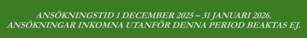 - Ansökan kan göras på svenska eller engelska. Ansökningar utanför perioden beaktas ej.
